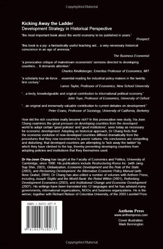 Ha-Joon Chang Kicking Away the Ladder: Development Strategy in Historical Perspective fiche de lecture - How did the rich countries really become rich? In this provocative study, Ha-Joon Chang examines the great pressure on developing countries from the developed world to adopt certain 'good policies' and 'good institutions', seen today as necessary for economic development. Adopting a historical approach, Dr Chang finds that the economic evolution of now-developed countries differed dramatically from the procedures that they now recommend to poorer nations. His conclusions are compelling and disturbing: that developed countries are attempting to 'kick away the ladder' with which they have climbed to the top, thereby preventing developing counties from adopting policies and institutions that they themselves have used. This book is the winner of the 2003 Myrdal Prize, European Association of Evolutionary Political Economy. For more information please see the book website: http: //kickingawaytheladder.anthempressblogRang parmi les ventes Amazon: #37413 dans LivresPublié le: 2002-07-01Langue d'origine: AnglaisNombre d'articles: 2Dimensions: 9.20" h x 1.00" l x 6.10" L, .63 livres Reliure: Broché196 pages